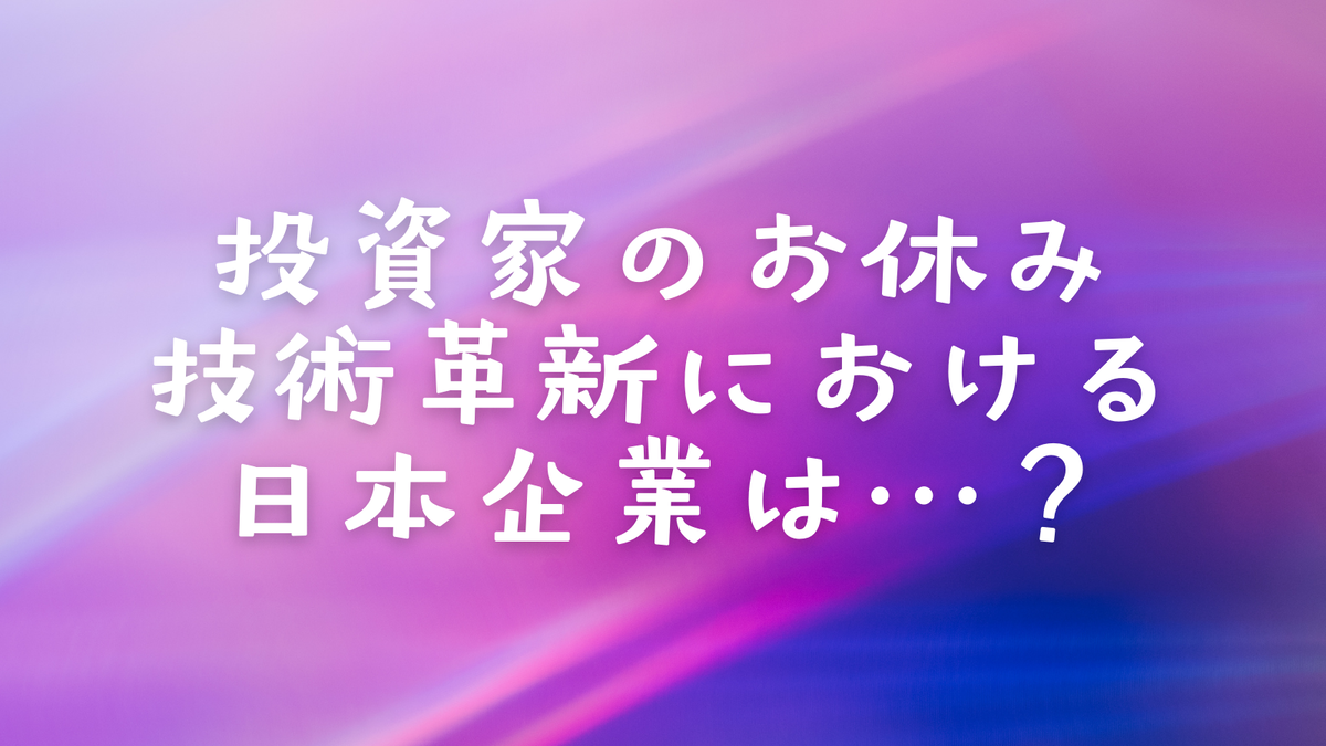 投資家のお休み・技術革新における 日本企業は…?